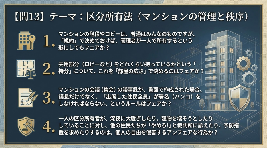 【問12】(借地借家法・借家)は、私たちが生活する「住まい」や「店舗」の貸し借りがテーマです。
