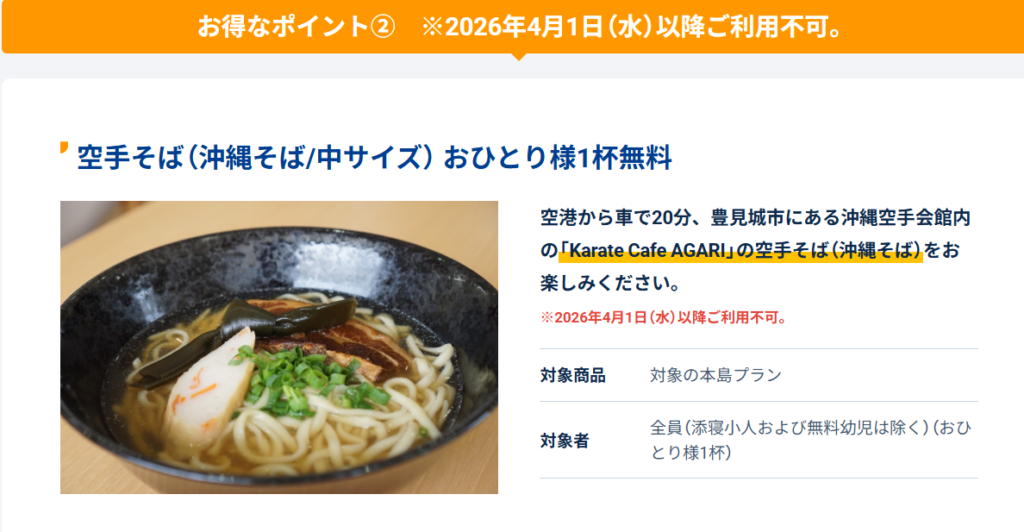 ハイサイ! 沖縄ツーリストの特典に「沖縄空手会館のそばが無料になる」というのがあります。