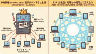 私たちが普段使っているLINE、Skype、そしてビットコイン。実はこれらすべてに共通する**「ある仕組み」**があることをご存知でしょうか?それは、特定の「親(サーバー)」を必要としない、対等なつながり**「P2P(ピア・ツー・ピア)」*...