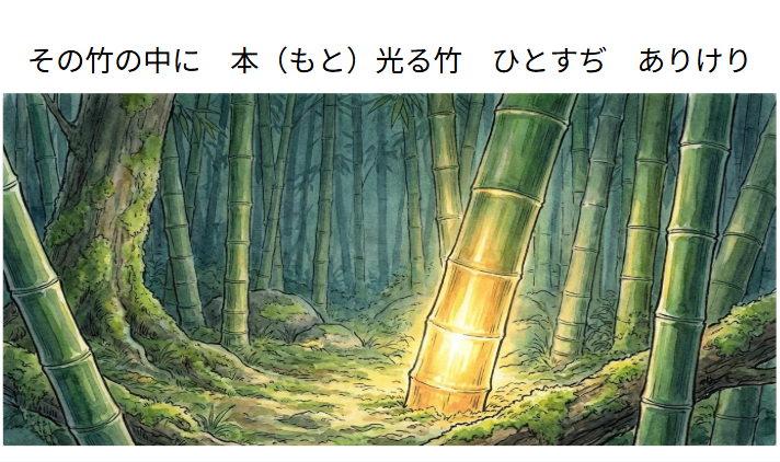竹取物語(國民文庫)の原文の前に、原文を理解するためのヒントを A I に作ってもらい、挿入してもらいました。物語の流れ(いつ・誰が・何をして・何を見つけ・どう思ったか)が意識できるようなヒントを作ってもらいました。